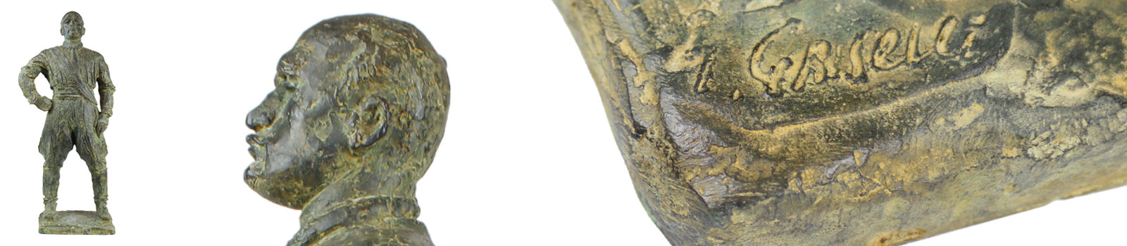 Bellissima rappresentazione bronzea del duce in stile “Marcia su Roma”, opera non comune in perfetta conservazione e patina. Firmata sul basamento. Cimelio autentico con garanzia scritta e provenienza certificata.