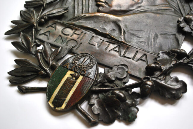 Mussolini e gli Arditi di Milano è una rarissima composizione degli anni 19/22 realizzata per la F.N.A.I. (Federazione Nazionale Arditi d’Italia) di Milano. Opera in bronzo di grandi dimensioni (cm 45×25) in perfetta conservazione conosciuta i soli due esemplari. Info e trattativa riservata.